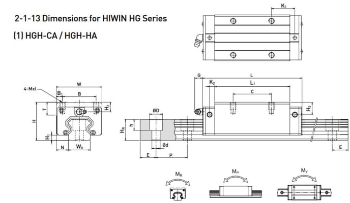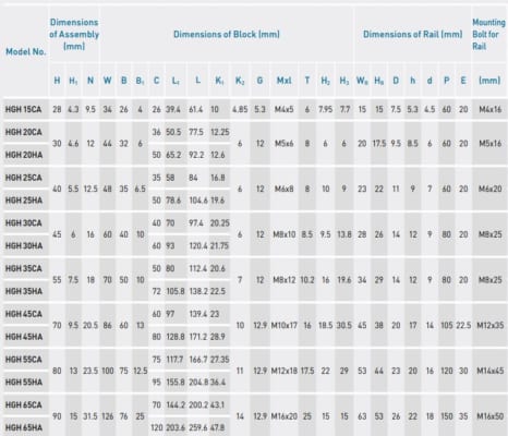 KÍCH THƯỚC CON TRƯỢT HGH15CA XEM BÊN DƯỚI